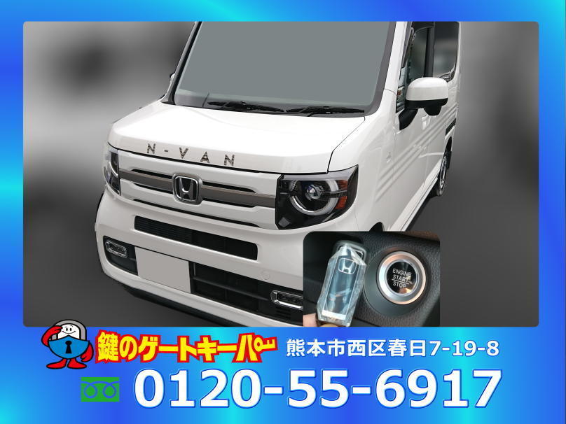 こんにちは鍵のゲートキーパーです。車屋さんからN-VANプラススタイルのスマートキーをもう1個追加したいとお電話を頂きました。R2年式の車をR2年に作業ってあまりないことですが(汗)いつも通りスマートキーのプログラムとキーカットをしてお渡しになりました。ご依頼ありがとうございました(^^)/
